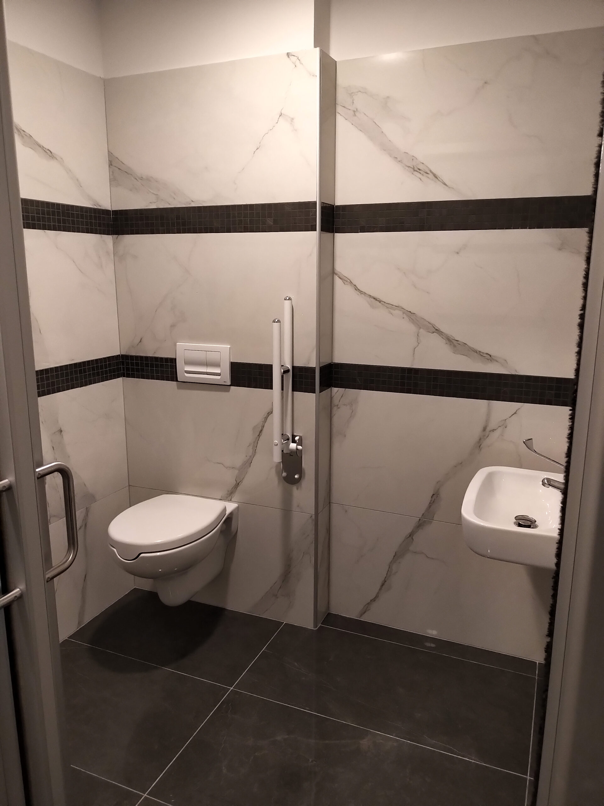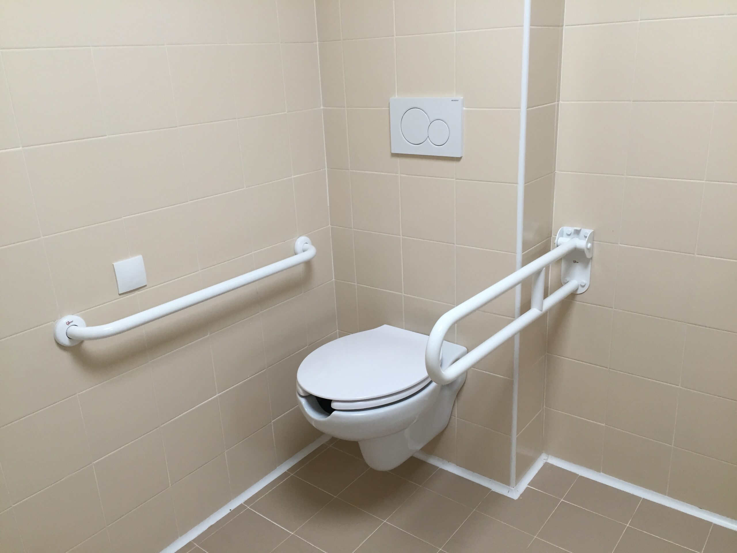 Public places accessible to all must comply with the barrier-free standard. They must be easily accessible even for those with limited mobility. The access must be comfortable and easy for at least one toilet.