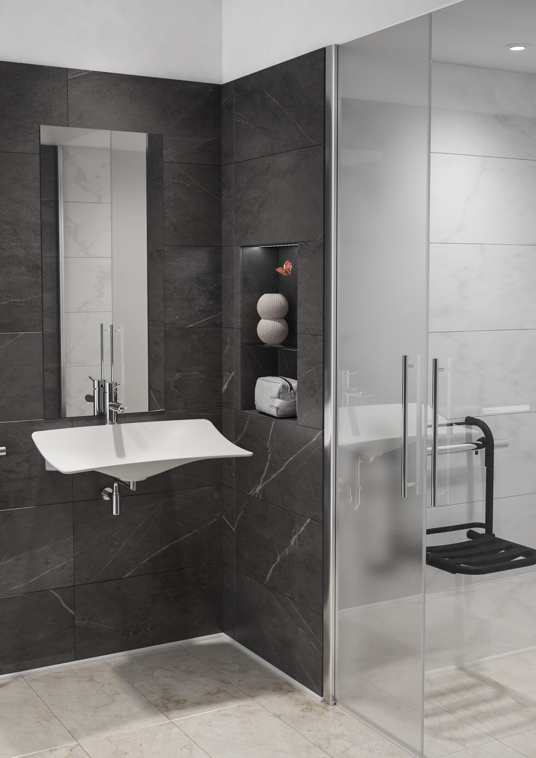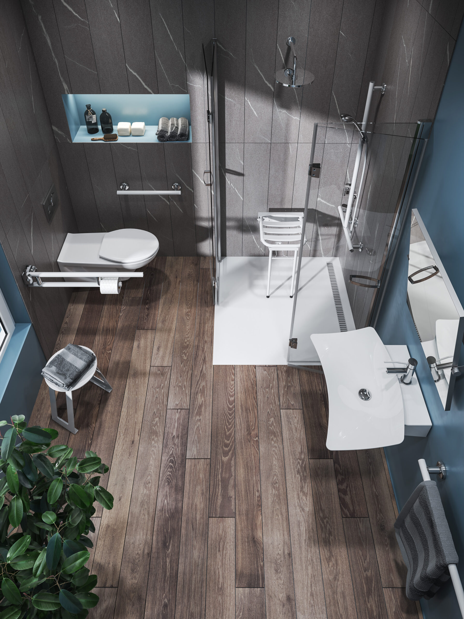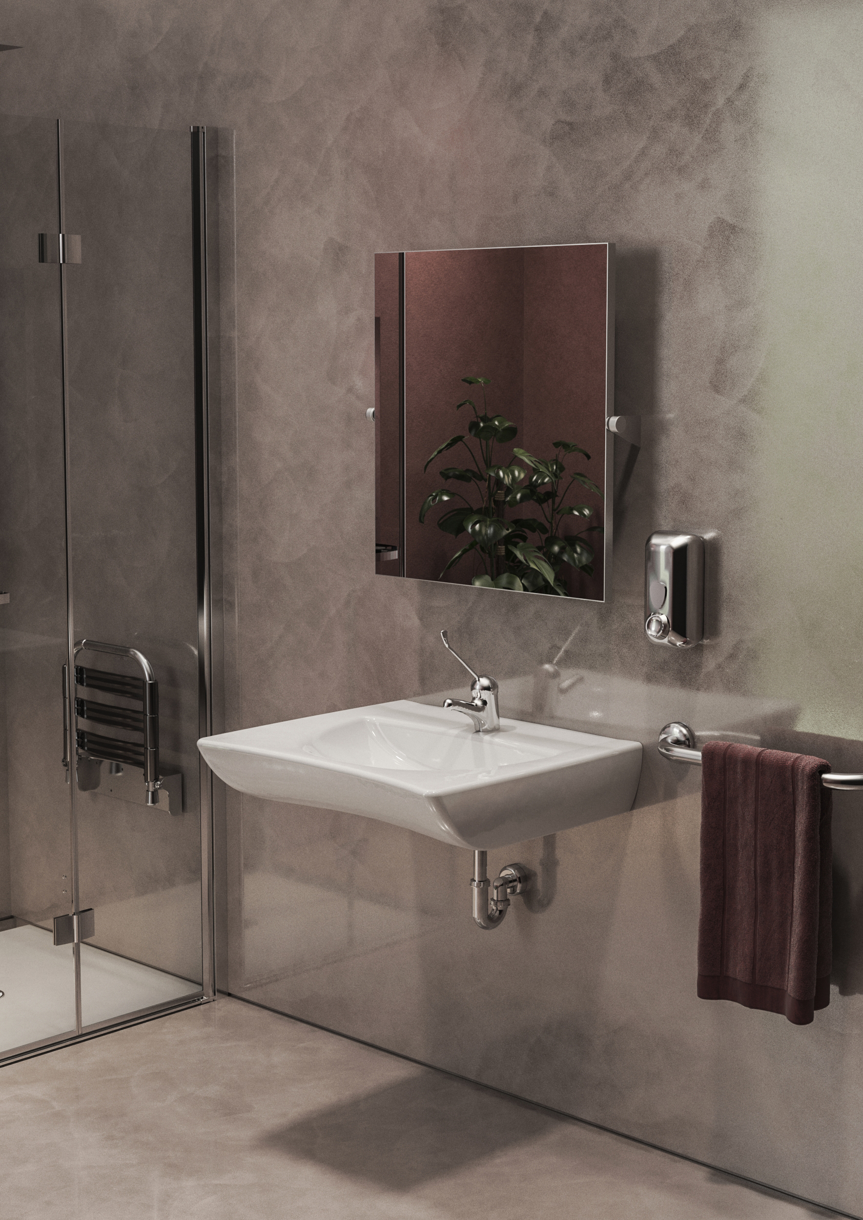 Goman offers aids and furnishing elements that allow to create compliant bathrooms, reducing obstacles, fully observing the regulations without neglecting the final aesthetic aspect of the bathroom environment.