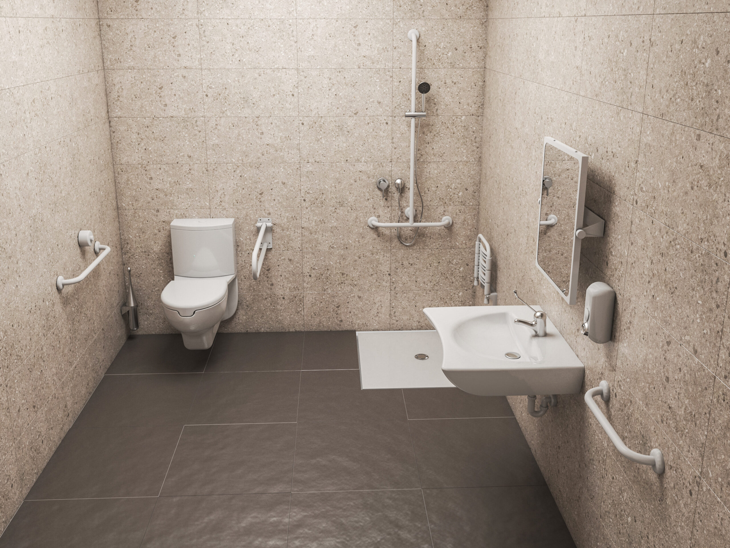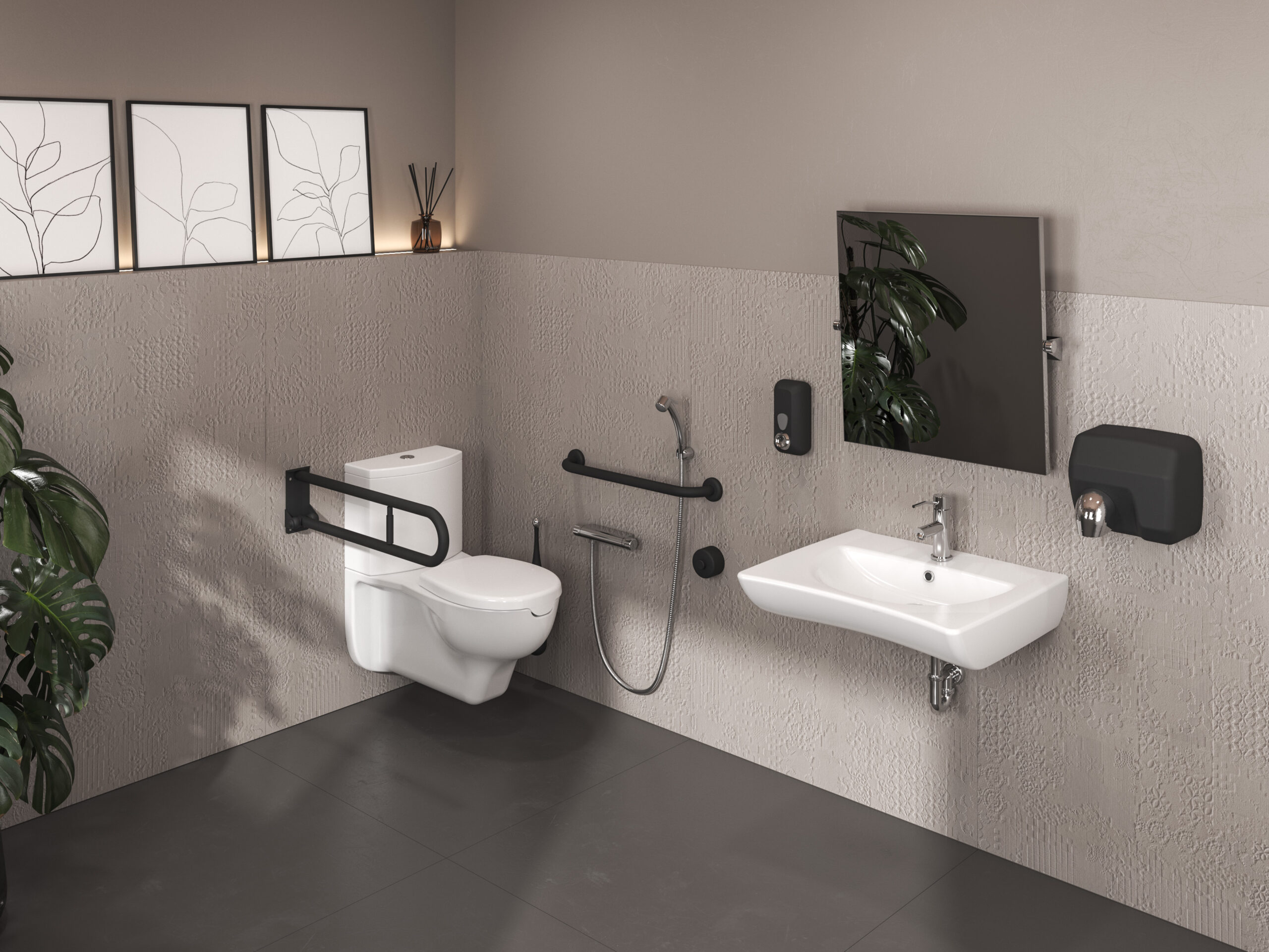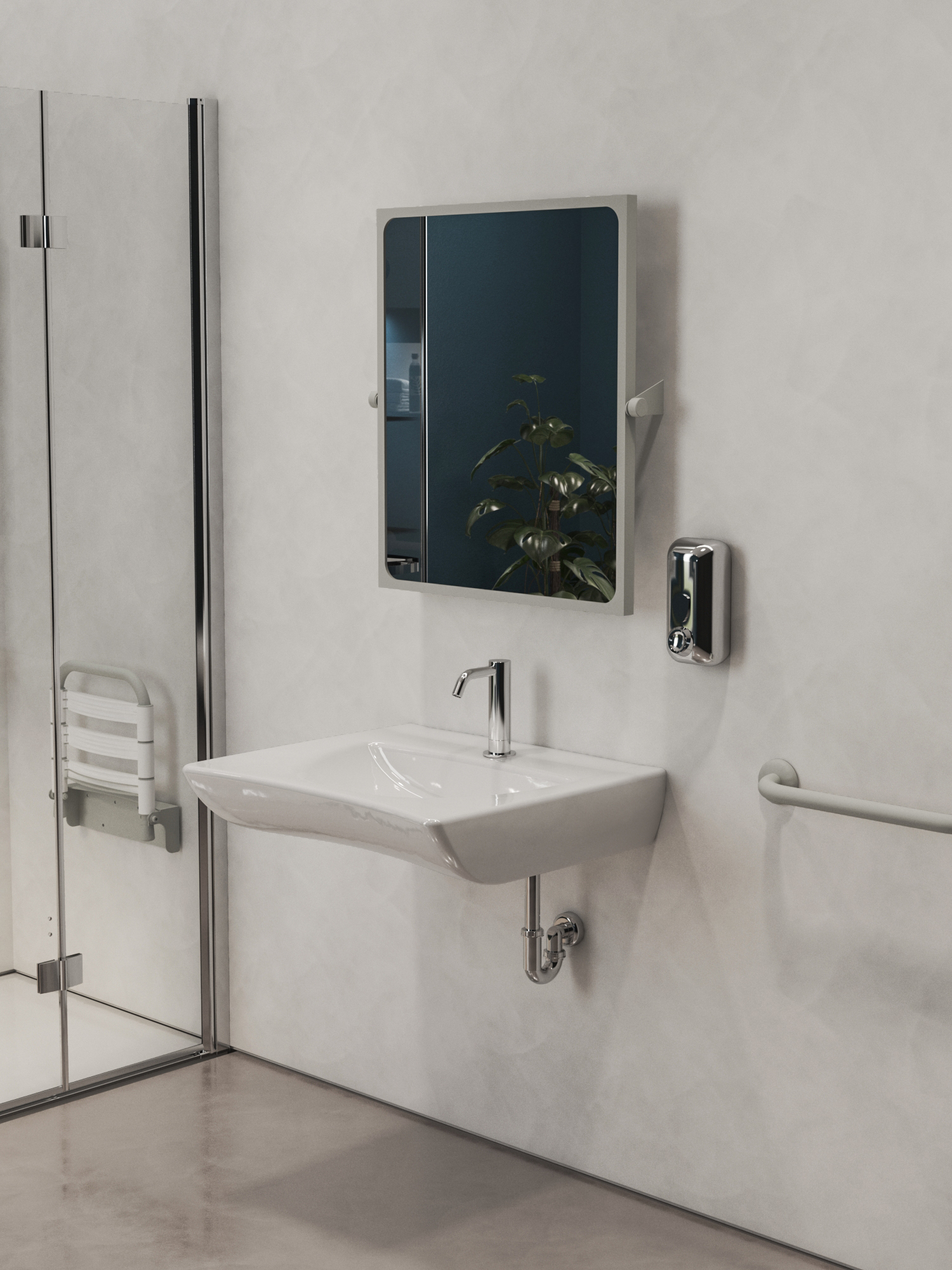 Places dedicated to care and health, such as hospitals, clinics, as well as public and private spaces widely used by the community, demand compliant bathroom environments equipped with high-quality tools, aids, and sanitary facilities that enable use in complete safety and autonomy.